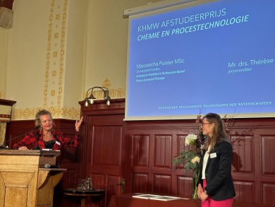 Every year, the Royal Dutch Society of Sciences (KHMW) awards the Young Talent graduation prize for chemistry and process technology. The programme nominates one or two students annually. Marouscha was selected because she received the highest possible mark for her thesis on 'Anticancer peptides in ruthenium-based photo-activated therapy'.
